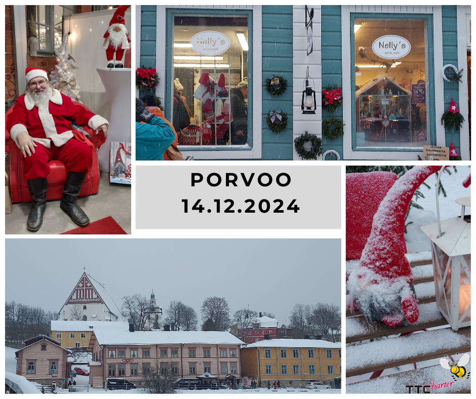 Tutustumme perinteisiin Porvoon Joulumarkkinoihin Raatihuoneentorilla, täällä koemme varmasti joulun tunnelmaa. Samalla pääsemme tutustumaan vanhan Porvoon ihastuttaviin putiikeihin.